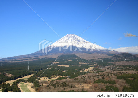 愛鷹連峰の越前岳 十里木高原展望台から望む富士山と宝永火口
