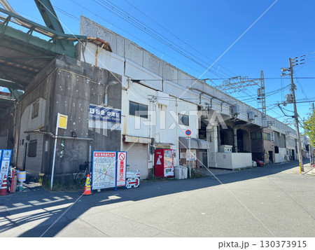 阪急宝塚本線岡町駅東口の商店街から見た原田神社の鳥居の風景 大阪府豊中市中桜塚