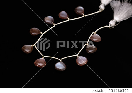 チョコレートムーンストーンのビーズと黒背景