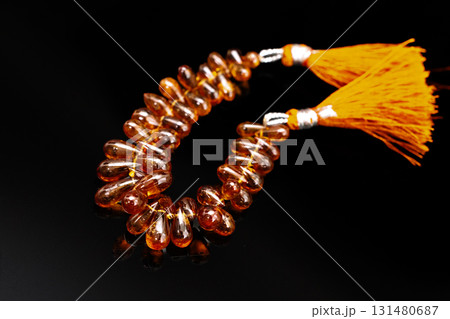 ヘソナイトガーネットのビーズと黒背景