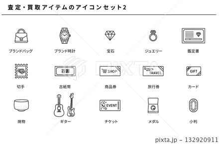 査定・買取アイコンセット2|ブランド時計・ジュエリー・商品券・骨董品などのベクターデザイン