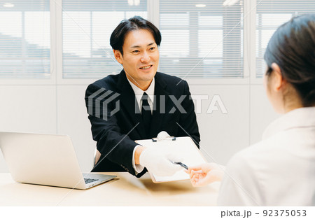 契約書にサインを求める白手袋をつけたビジネスマン(鑑定士・質屋・男性)