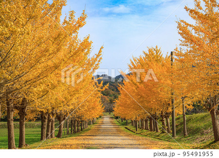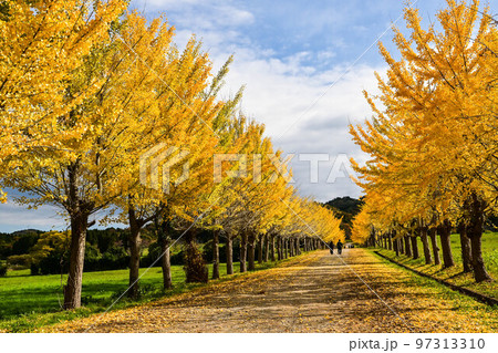 能登の美しいイチョウ並木