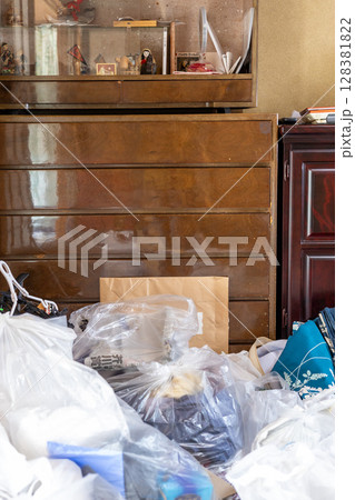 実家仕舞いをしている最中の不用品とゴミだらけの部屋