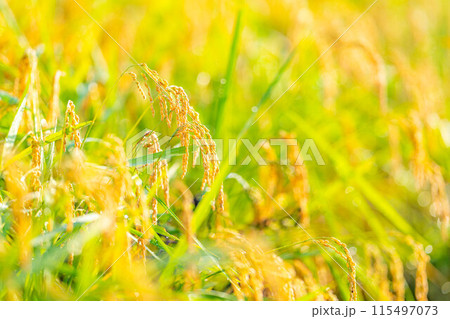 【秋素材】朝露をまとった稲穂【長野県】