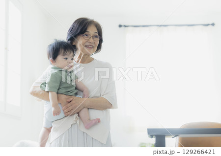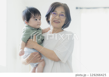 おばあちゃんに抱っこされる赤ちゃん