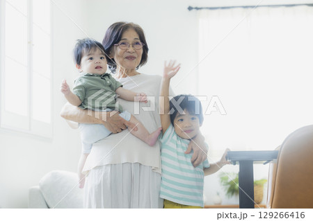 室内で遊ぶおばあちゃんと孫