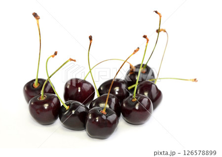 <果物狩りイメージ>木になっている鮮やかなさくらんぼ