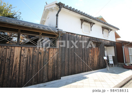 室津のまちなみ 黒しっくいと白しっくいとの焼杉板張りの古民家 兵庫県たつの市御津町室津