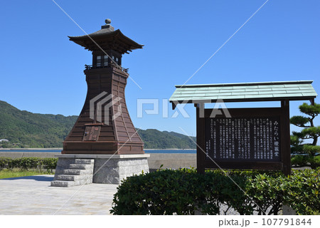 「みたらい灯籠堂」後方に、象鼻ヶ岬を望む