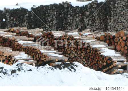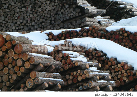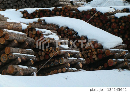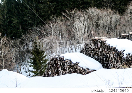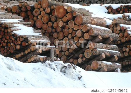 岩手県川井村区界の伐採した木材を寝せている 川井村は日本で一番最後に電気が通った場所