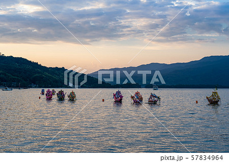 京都府 宮津市 宮津燈籠流しの精霊船 紅白の追っかけ灯籠