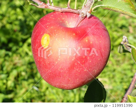 日焼けがある高密植栽培のふじりんご、宮美ふじ