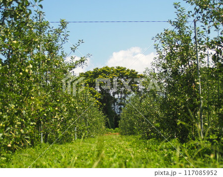 真夏の高密植栽培のリンゴ畑1