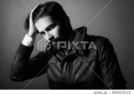 Artistic dark portrait of the young beautiful man. The young man smokes a tube.