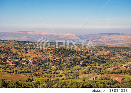 View over villages of Tizi N'Tichka pass in the Atlas mountains, Morocco