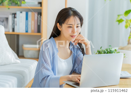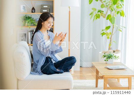 ステイホーム ゲームで遊ぶ女性 部屋着