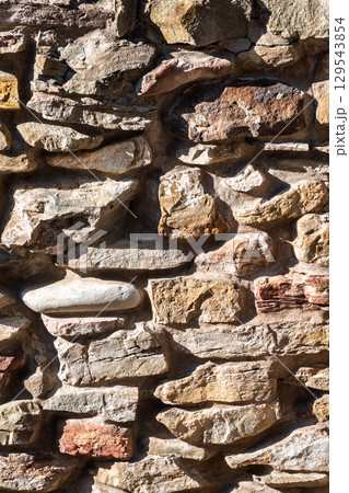 Textured stone wall showcasing warm tones and unique patterns in daylight