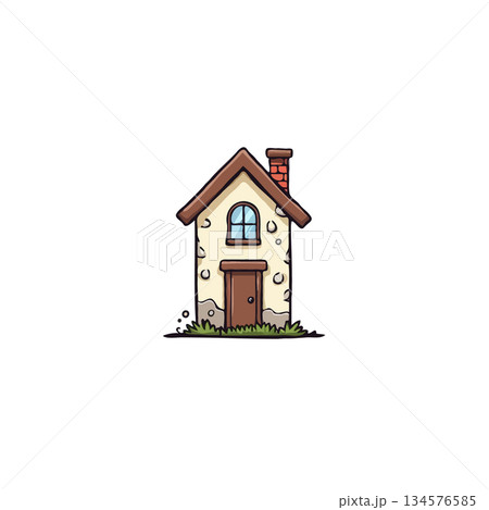 Whimsical dwelling illustration featuring textured walls, inviting door, idyllic window, and