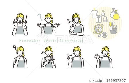 シンプル イラスト 主婦の表情とポーズのバリエーション 人物セット