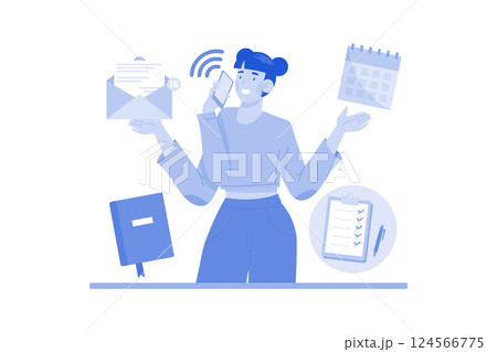 ブルーバックでタオルを持つハウスクリーニングの女性作業員