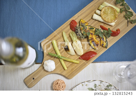 焼き魚とご飯、味噌汁、小鉢の和食の夕食
