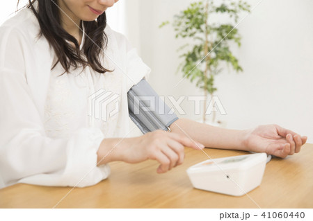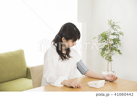 血圧を測る女性 リストバンド 健康管理 妊娠 家庭用 低血圧