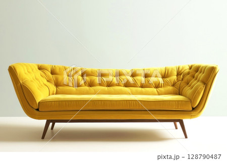 A vibrant yellow couch with mid-century modern design brings a pop of color and style to any room.