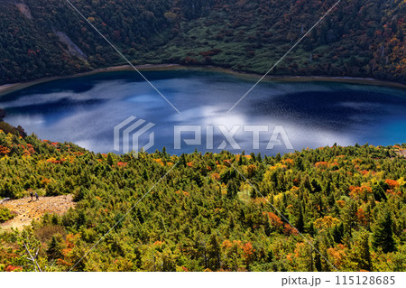 秋の一切経山付近から望む五色沼(魔女の瞳)