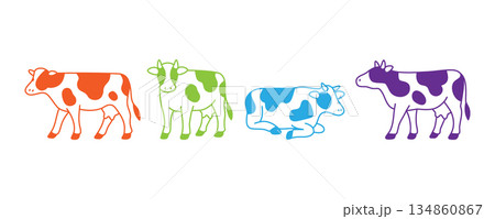 Set of colorful cows in different poses, Flat vector farm animal illustration