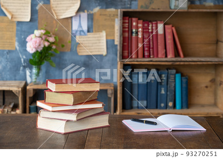 机の上に積み上げられた本