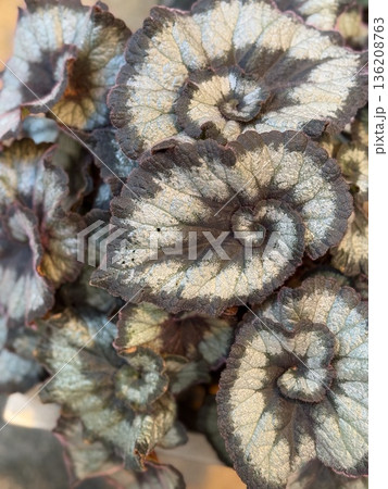Close-up of begonia leaves with textured patterns, ideal for a nature background or decoration