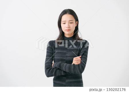 腕組みをする若い女性