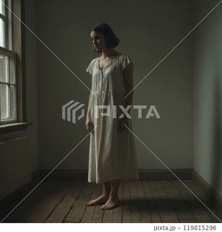 A girl poses gently, with a distant gaze against a simple background. Realistic photography like this emphasizes genuine emotions, reflecting growing awareness about children's mental health.