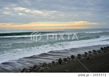 夕暮れの磯原海岸月浜