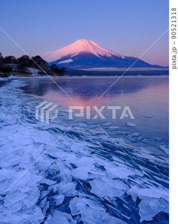 山梨山中湖_寄せ氷と紅富士の絶景