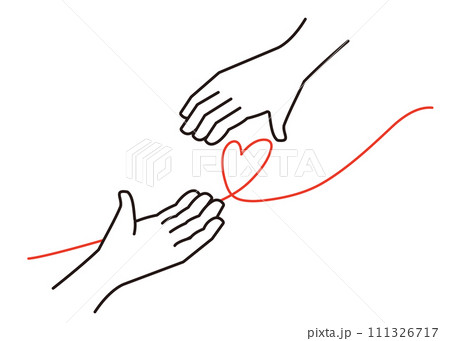 差し伸べる手とつながるハートの線画イラスト ー 協力・援助・救出のイメージ