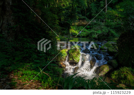 白糸の滝 渓流風景 「数十万年前の火山岩からなる美しい白糸の滝(別名「寄姫の滝」)」 阿蘇郡西原村