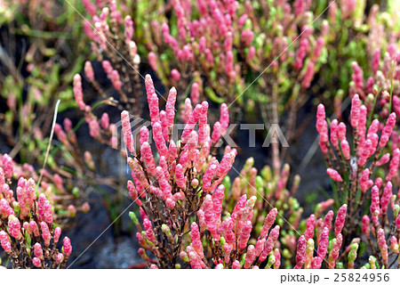 アッケシソウ、厚岸草、別名珊瑚草の本州唯一の自生地、岡山県浅口市、寄島干拓、手前がアッケシソウ