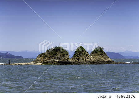 青佐鼻海岸から見た三郎島と三ツ山 岡山県浅口市寄島町