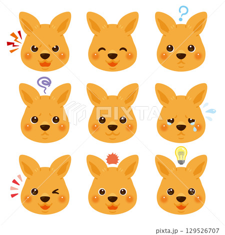 カンガルーのイラストセット 顔表情のみ