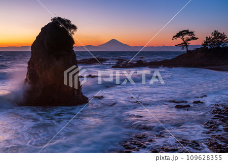 横須賀市立石海岸からマジックアワーの富士山