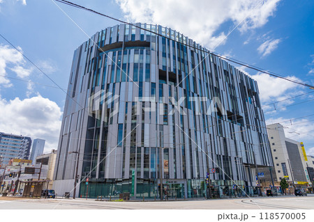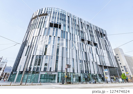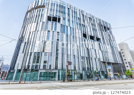 富山県富山市 快晴の富山市ガラス美術館・富山市立図書館本館