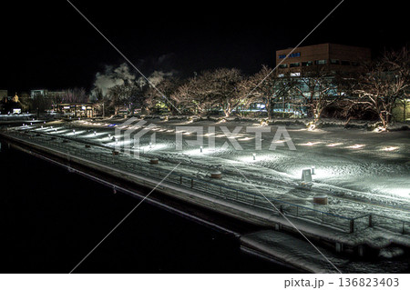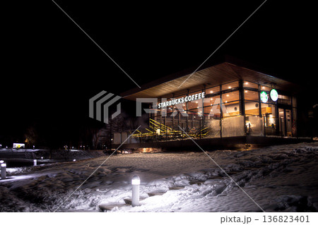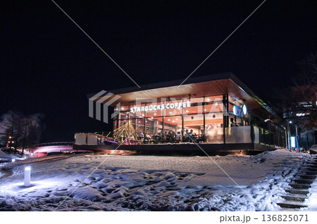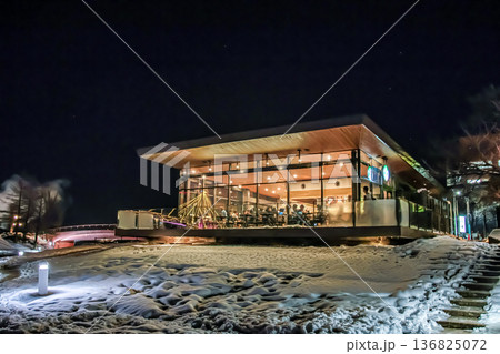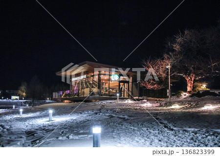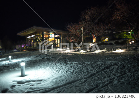 世界一美しいカフェがある真冬の夜の風景