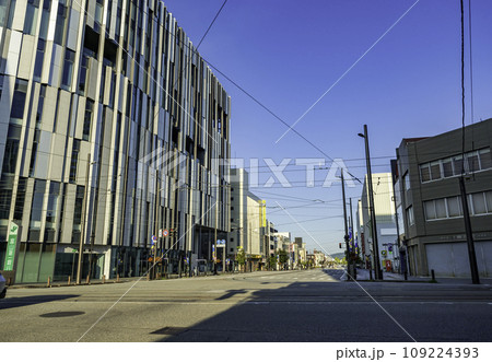 富山 TOYAMAキラリ(富山市ガラス美術館)のある西町交差点の風景