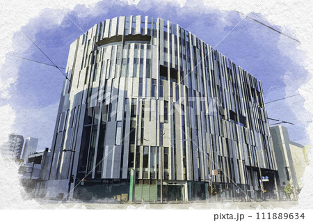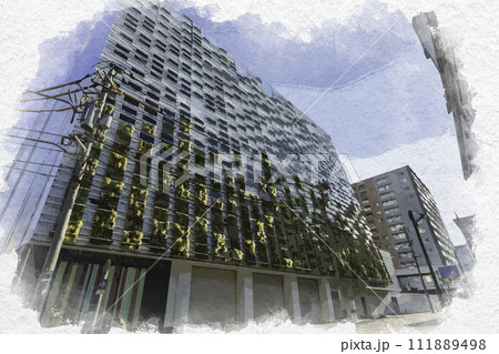 水彩画風 富山市街 富山第一銀行本店 TOYAMAキラリ 富山県富山市