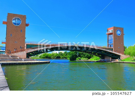 天文橋と水面に映える景観 富岩運河環水公園