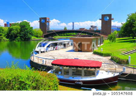 【富山県】晴天の富岩運河環水公園の水上バス