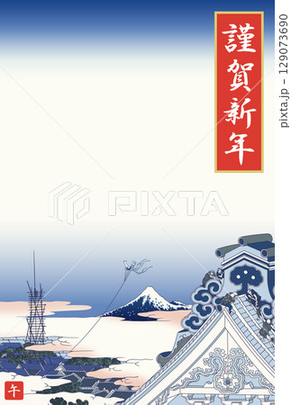 年賀状 葛飾北斎 相州七里濵 縦 富士上