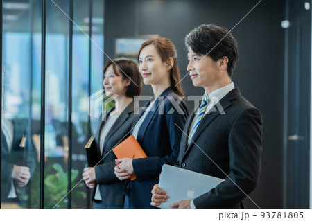 最先端オフィスで働くスーツ姿のビジネスチーム